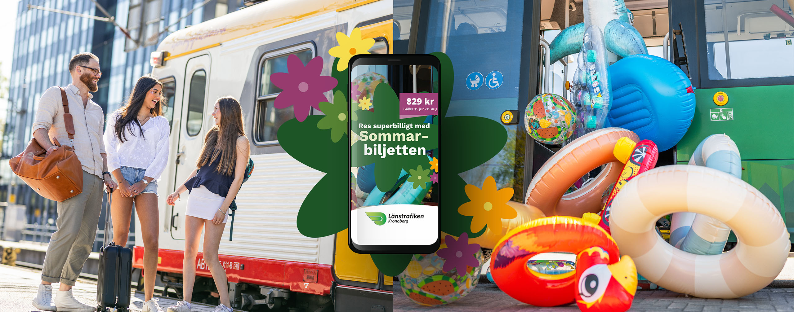 Länstrafiken Kronoberg ville skapa en glädjefylld kampanj för den nya sommarbiljetten –ett starkt erbjudande där alla kunde resa fritt i hela länet under hela sommaren för endast 829 kronor. Milou tog fram ett koncept fyllt av badleksaker, glada resenärer och riktig sommarkänsla, med tydligt budskap som lyfte erbjudandet och satte fokus på försäljning.